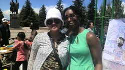 Америкалык Тейлор Теплоключенка айылындагы балдарга англис тилин үйрөтүүдө