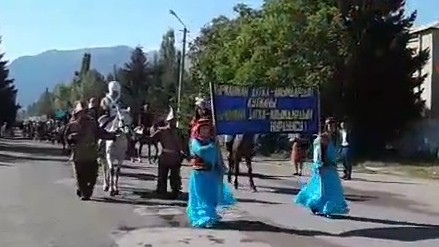 Сотрудники Ак-Суйского психоневрологического стационарного учреждения на параде в День независимости прошлись в образах К.Датки, М.Скоболева и героев повести Ч.Айтматова (видео)